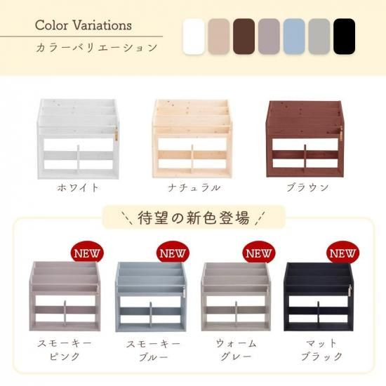 | 商品名 | 表紙が見える絵本棚 Mサイズ(ナチュラル・ブラウン・ホワイト・スモーキーピンク・スモーキーブルー・ウォームグレー・マットブラック) |