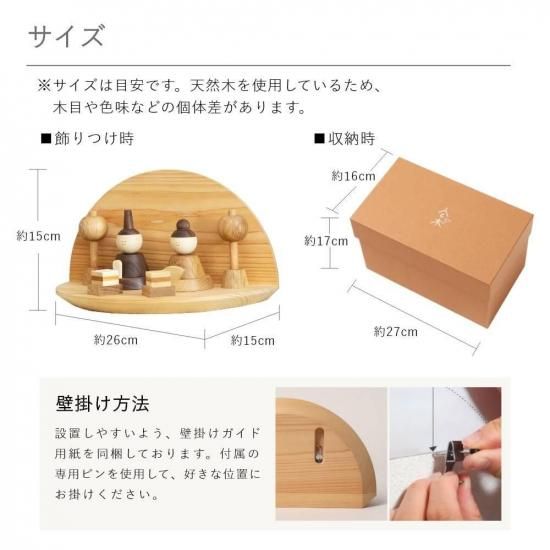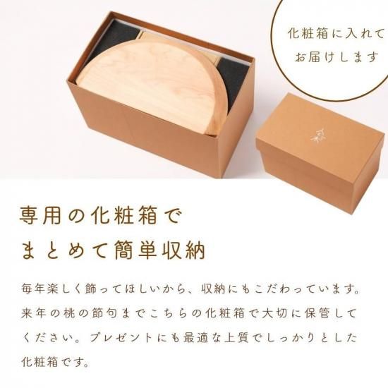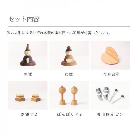 | 内容 | 半月台座、男雛、女雛、ぼんぼり×2、菱餅×2、専用固定ピン×2 |