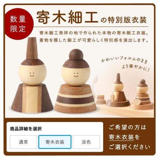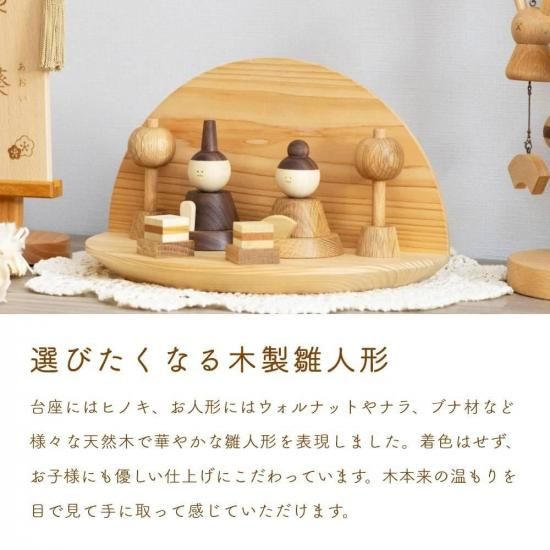 | 素材 | 半月台座:ヒノキ 人形:ウォルナット/ナラ/ミズキ/ブナ/ひのき |