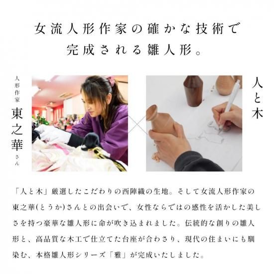 伝統的なお衣装で華やかで美しいお人形でありながら、シンプル・モダンなインテリアに馴染む、おしゃれな雛人形