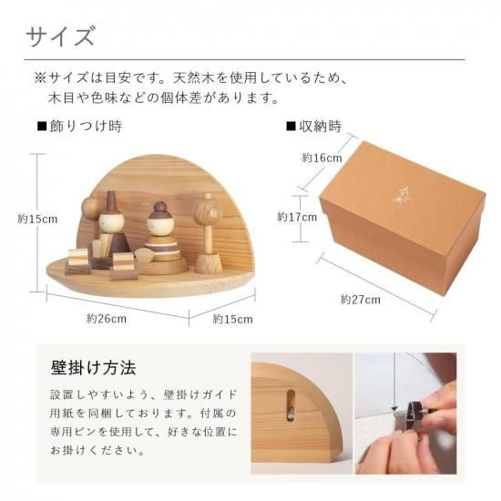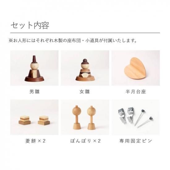 | 内容 | 半月台座、男雛、女雛、ぼんぼり×2、菱餅×2、専用固定ピン×2 |