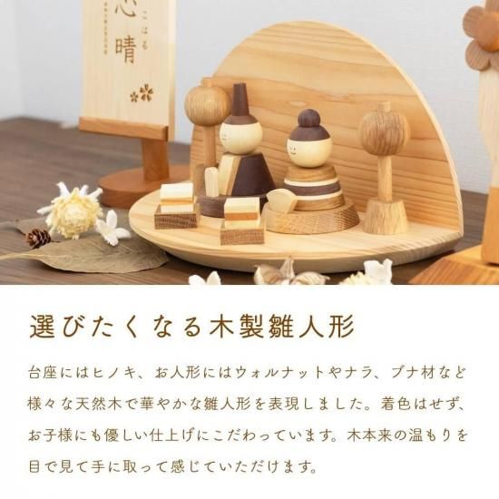 | 素材 | 半月台座:ヒノキ 人形:ウォルナット/ナラ/ミズキ/ブナ/ひのき |