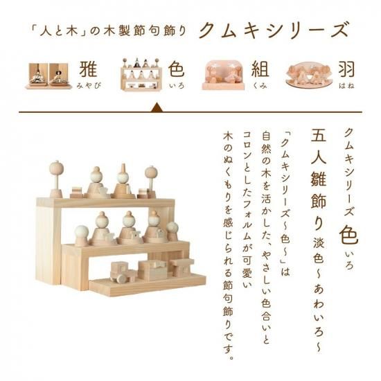 | 商品名 | クムキ 色 〜いろ〜 五人雛飾り 淡色 〜あわいろ〜 |