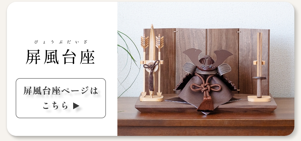 | 素 材 | 大台座:ウォルナット 千本格子:ヒノキ 兜 吹き返し部分:シート状天然木 |